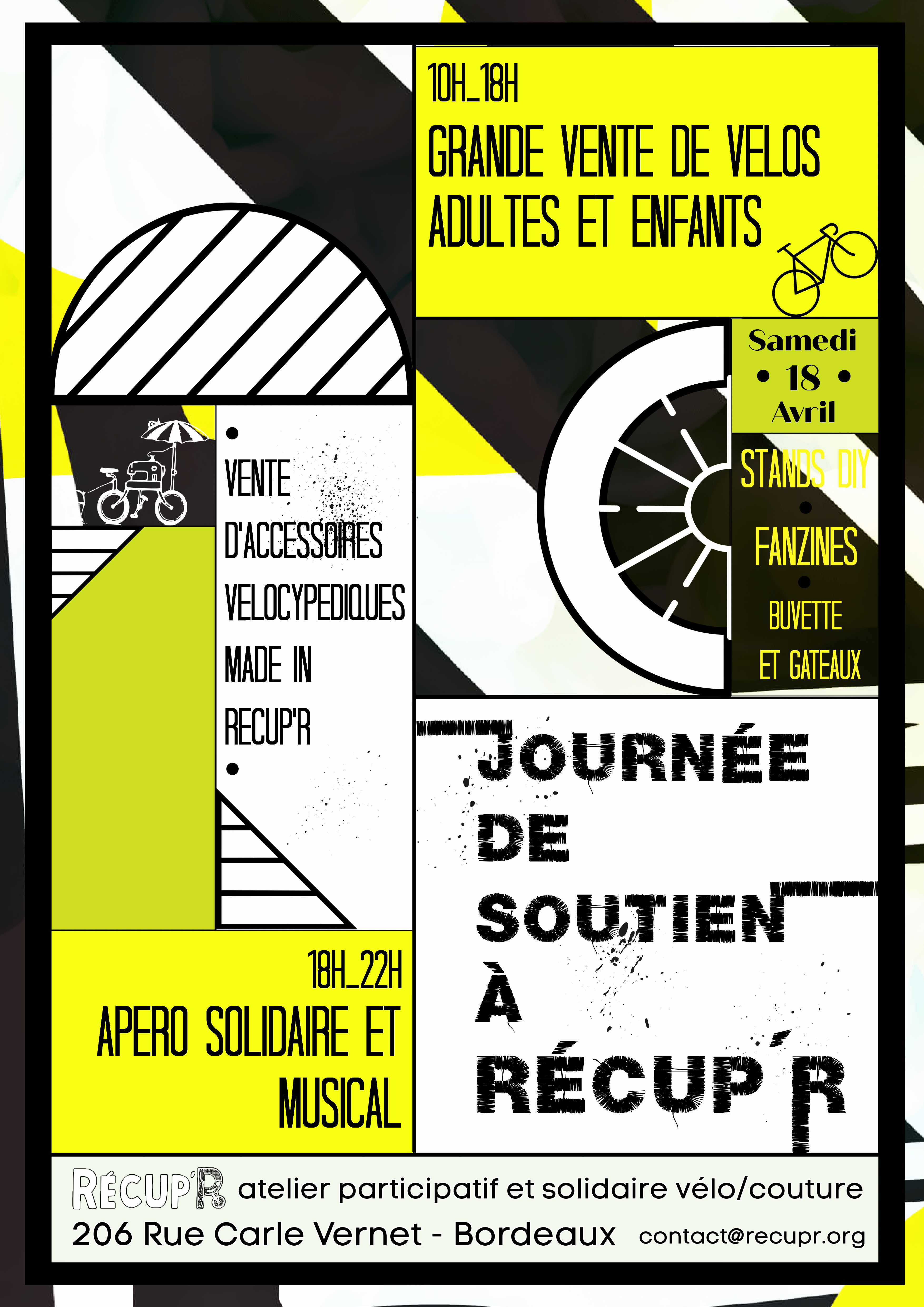 Les horaires des permanences vélo/couture sont pour l'autoréparation. Pour les dons et achats de vélo (et tissus), vous pouvez passer tous les après-midis du mardi au samedi
